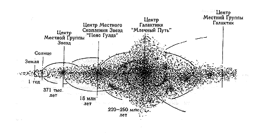1. Фундаментальным шагом в развитии науки стало открытие в 1993-1997 гг. коллективом отечественных ученых (из ряда научных институтов Москвы, Нижнего Новгорода, Санкт-Петербурга и др.) иерархического строения Галактики, представленного на рис. 1.
