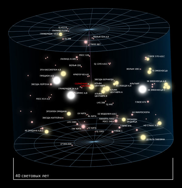 Самые крупные наши соседки: α Центавра, Сириус и Процион. Ещё одна яркая близкая звезда — Альтаир — находится на расстоянии 5,14 пк от Солнца (примерно 16,8 св. года).